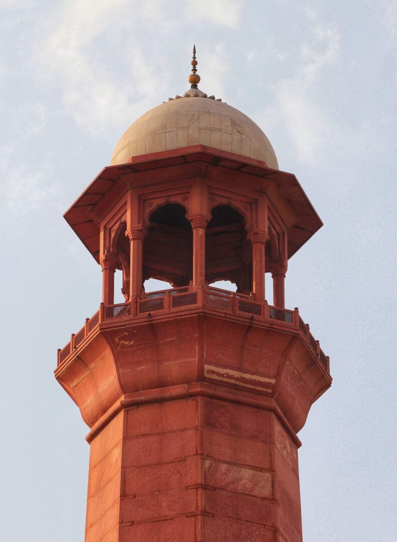 The 3-story minarets are structured with finely fashioned red sandstone. Minarets are 8 and a half feet in diameter and 67 feet in outward circumference. All minarets are wrapped in a marble canopy. Floral arrangements on the minarets are inspired by Hinduism. In Hinduism, flowers are considered the most decent way to represent beauty. The same concept is recreated in this mosque.