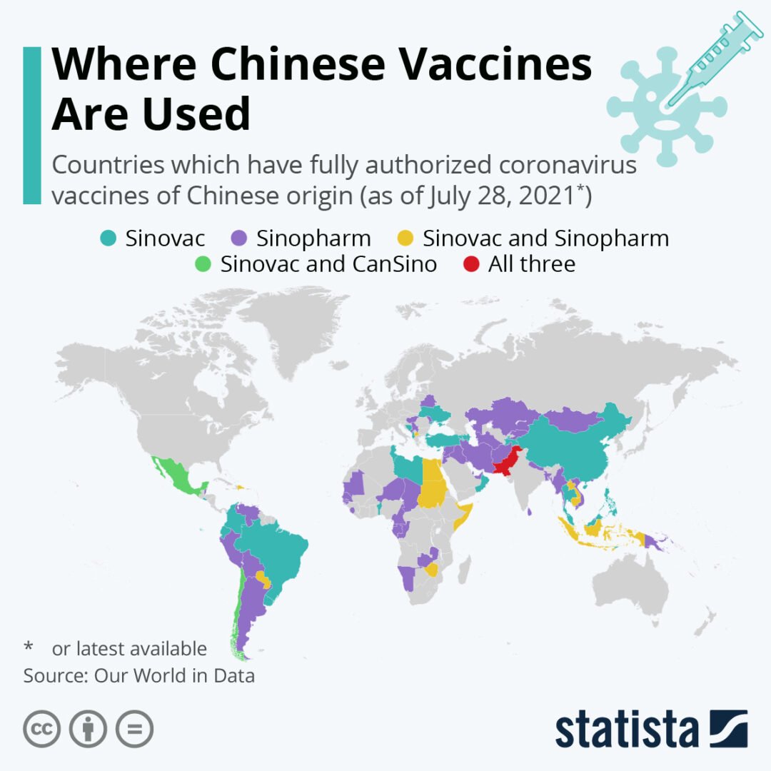 In the field of health, China has donated the most vaccines for the COVID-19 pandemic, after the US, since the vaccines have been created. Many countries have rejected Chinese donations due to mistrust. For example Malaysia has not accepted Chinese vaccines because they consider them least effective for the patients.