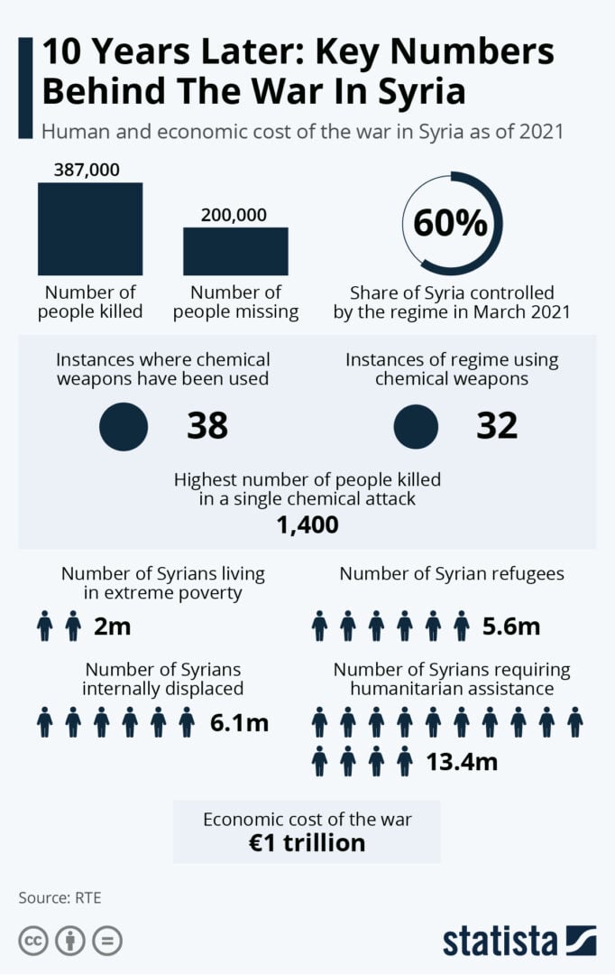 Almost a decade of armed internal conflict continues to rage unabated in Syria. The civil war in Syria has devastated the country’s economy and displaced – both internally and externally – half of the country’s population. Estimates by the United Nation shows, that around 400,000 people have lost their lives in Syria since the start of the conflict.