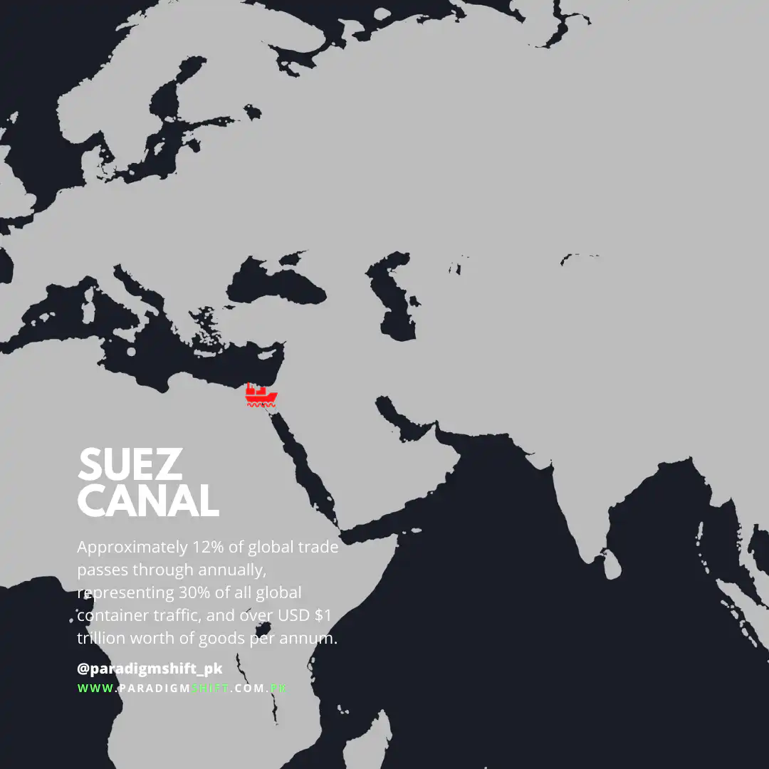 The significance of this canal can be gauged from the fact that the recent six-day blockade of the Suez Canal resulted in a $90 million loss in toll revenue to the Egyptian government as scores of ships waited to cross the waterway or took alternate ways. The blockage restrained about $10 billion of cargo a day from passing through the strait. About 12% of global trade passes through this strait annually, representing 30% of all global container traffic, and more than $1 trillion of goods per annum.
