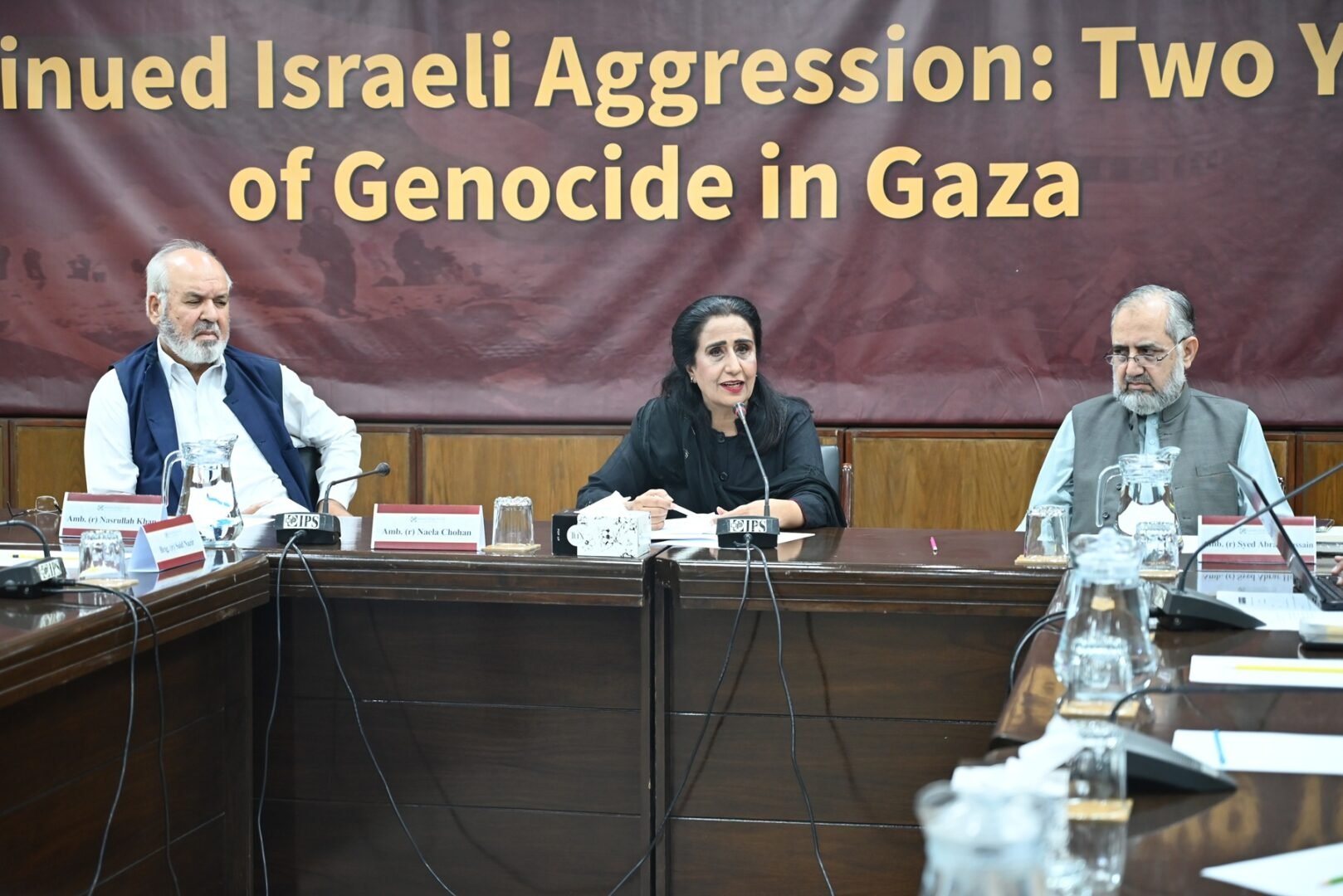 Seasoned diplomats, defense analysts, and academics observed this during a seminar titled “Continued Israeli Aggression: Two Years of Genocide in Gaza,” held at the Institute of Policy Studies, Islamabad. It was addressed by Ambassador (r) Naela Chohan as the keynote speaker, Ambassador (r) Nasarullah Khan, defense analyst Brigadier (r) Said Nazir, senior analyst Dr. Azhar Ahmad, and Ambassador (r) Syed Abrar Hussain, vice chairman of IPS.
