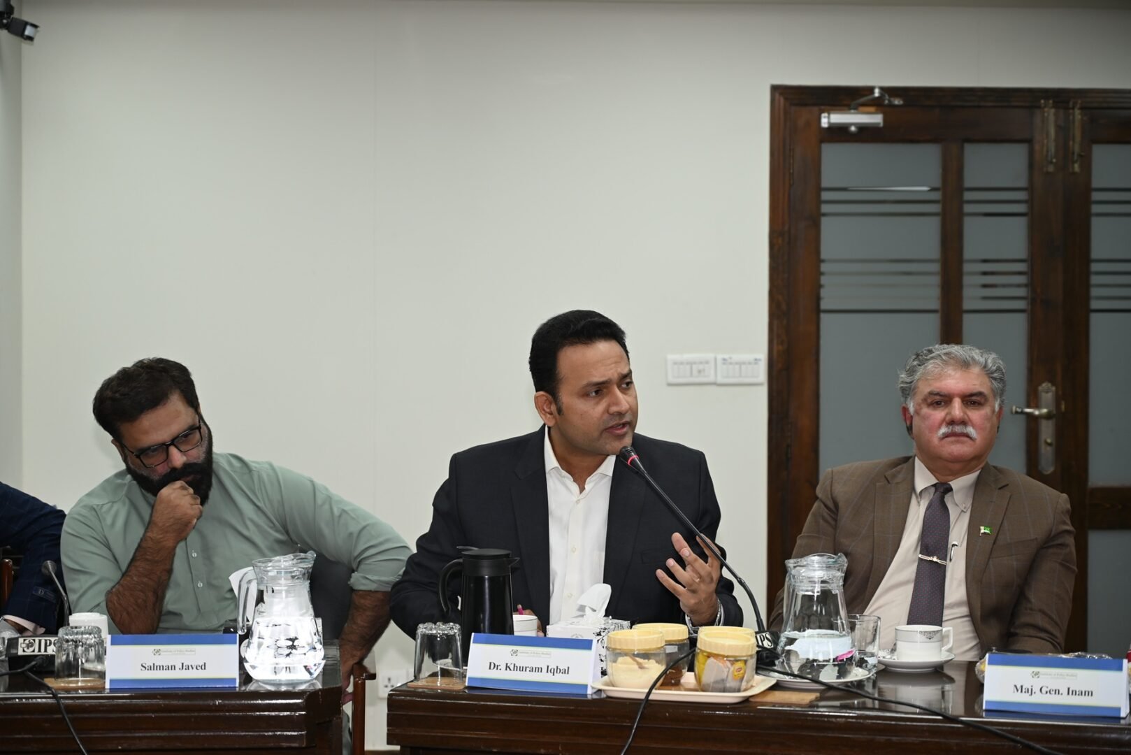 The speakers included Khalid Rahman, Chairman IPS; Ambassador (R) Syed Abrar Hussain, Vice Chairman IPS; Prof. Dr. Shabana Fiaz, Head of the Department of Defence and Strategic Studies at QAU; Major General (R) Inam-ul-Haque, international affairs expert; Brigadier (R) Said Nazir, defense analyst; Tahir Khan, journalist; Dr. Ashraf Ali, security and political analyst; Dr. Abdullah Khan, Managing Director at PICSS; Salman Javed, Director General of South Asia Times; Dr. Khurram Iqbal, Associate Professor at the National Institute of Intelligence and Security Studies, QAU; and Dr. Faisal Javaid, Head of the Department of International Relations at FUUAST, Islamabad.